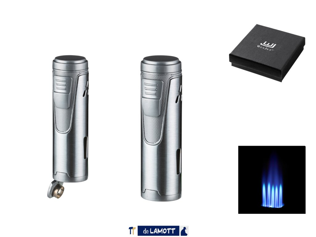 Tryskový (5 trysek) zapalovač na doutníky s integrovaným ořezávačem na doutníky (piercer 10mm).